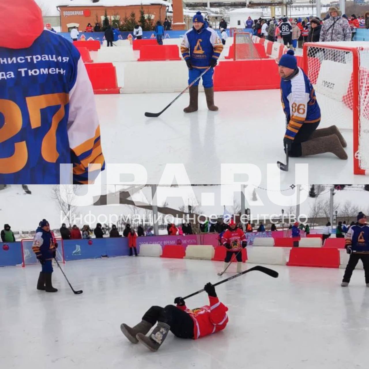 В Тюмени прошёл необычный матч — команды сыграли в хоккей на валенках. На льду встретились сборная мэрии и правительства региона и команда МЧС. Итог — разгромная победа чиновников со счётом 9:1.