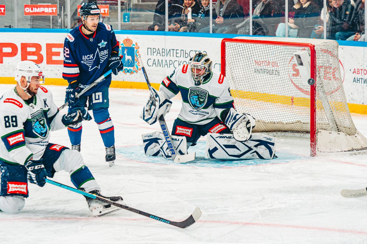 Матч в Самаре получился упорным. Начало первого периода выдалось для югорчан непростым — команда несколько раз оставалась в меньшинстве, но оборона сумела справиться с атаками хозяев. На 14-й минуте ЦСК ВВС всё же открыл счёт, отличившись уже в равных составах.